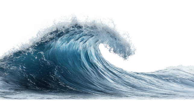 A majestic ocean wave crashing, showcasing the beauty and power of the sea against a white isolated background.