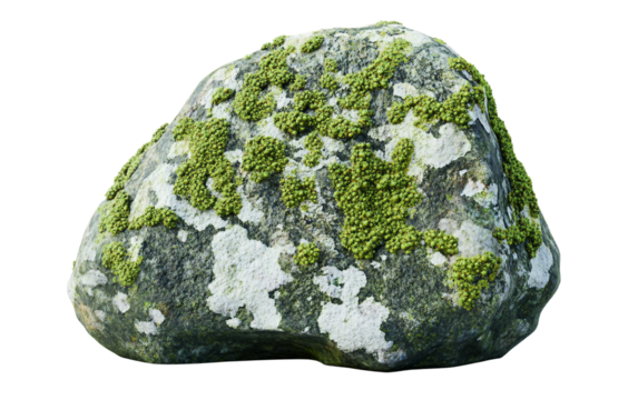 A realistic nature scene featuring a stone coated in green lichen showing the blend of rock and plant life