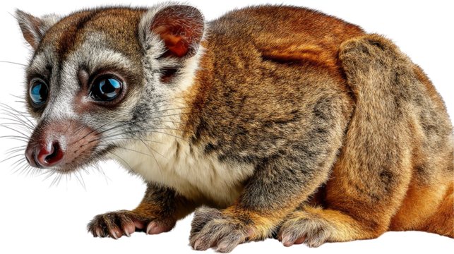 Cute young coati with large eyes and soft fur, looking curiously. Isolated on transparent background