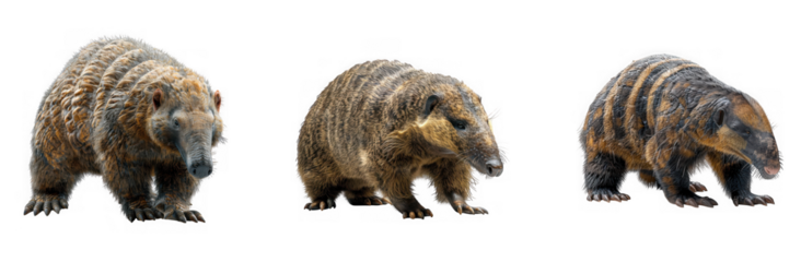 Three coatis standing on a transparent background, isolated on transparent background