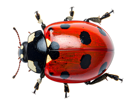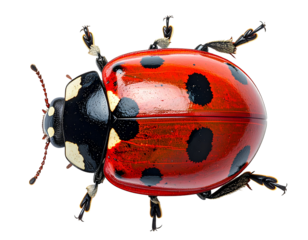 A ladybug with red and black spots on transparent background
