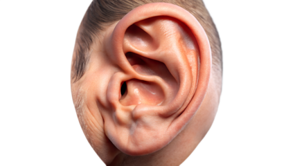 Close-up of a human ear structure. transparent background