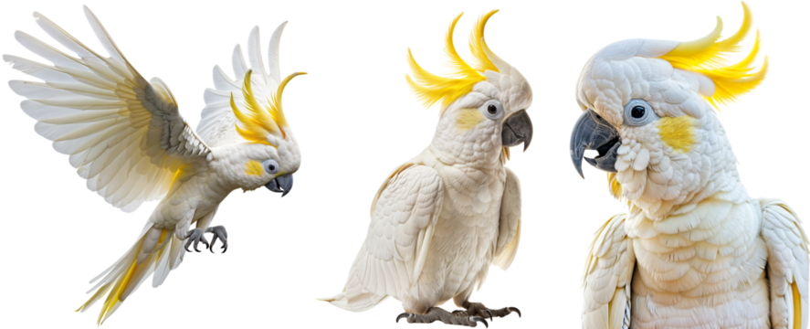 Parrot animation. Exotic adorable fauna character flight. White sulphur crested cockatoo. Animated sprites loop of tropical bird flying
