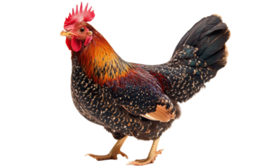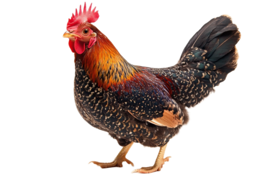 elegant rooster with vibrant plumage, standing proudly Transparent background, PNG