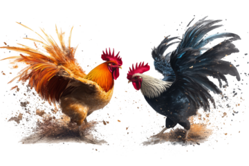 two rooster fighting in a cockfight transparent background.