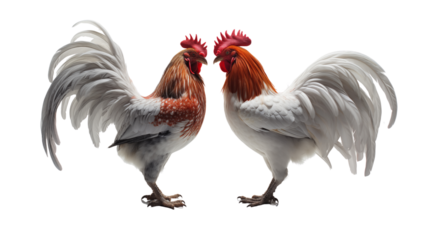 Two Roosters, Facing Each Other, cutout, PNG isolated on white or transparent background