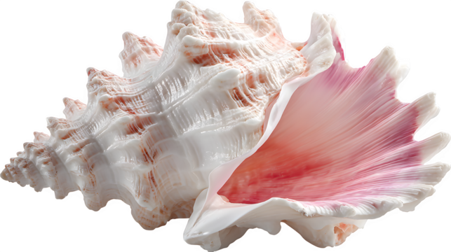 Pink and White Conch Shell, isolated on transparent background