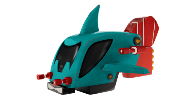 Futuristic Teal and Red Toy Spaceship.