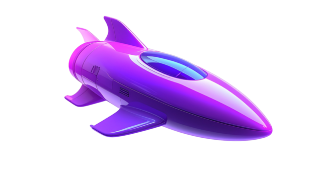 Purple and yellow space rocket on transparent background