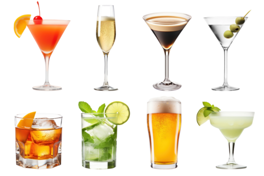 Collection of margarita cocktail tequila cutout clipping path png isolated on white or transparent background
