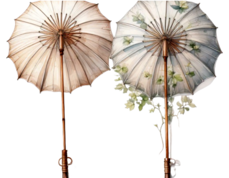 Classic Wooden-Handle Parasol Bundle in Watercolor Style isolated on transparent background