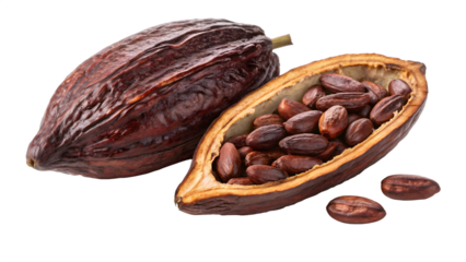 Raw Cocoa Pods and Beans Displayed on Transparent Background