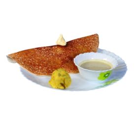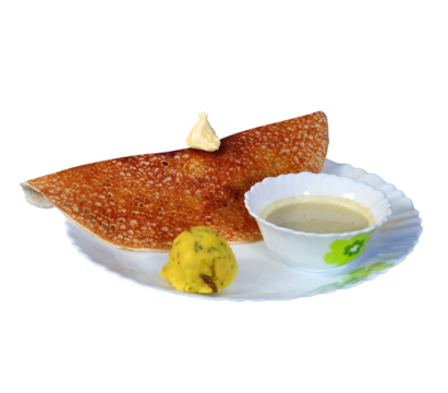 Indian Masala Dosa with Coconut Chutney and Sambar on Banana Leaf Keywords: dosa, indian food isolated on a transparent background
