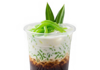 Refreshing cendol dessert drink with coconut milk and palm sugar isolated on transparent background