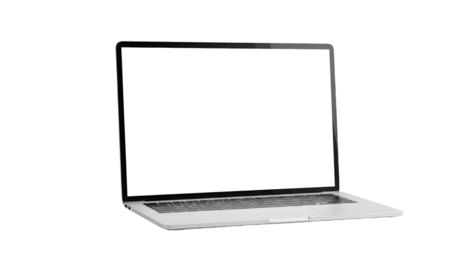 Sleek silver laptop with a blank white screen angled view showcasing modern design.