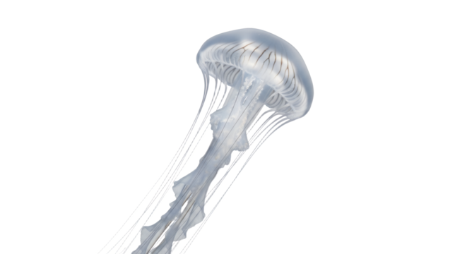 Translucent Jellyfish Isolated on White Background Showcasing its Delicate Structure and Graceful Underwater Movement