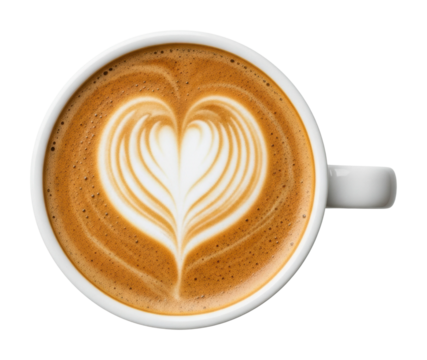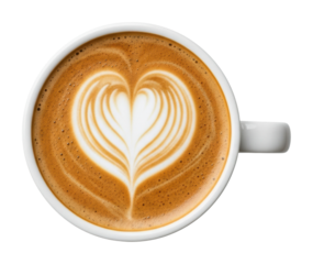 Heart-shaped latte coffee shop beverage warm atmosphere isolated on transparent background