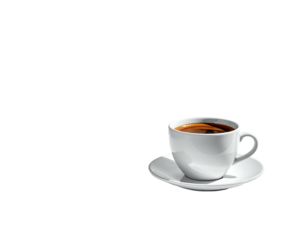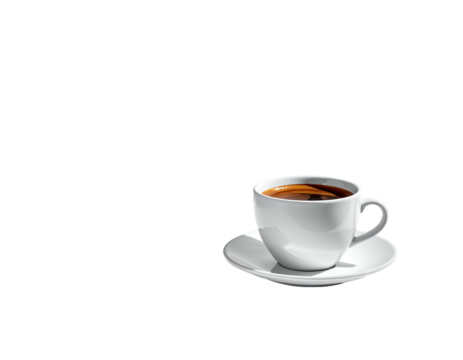 A coffee cup filled with fresh coffee, perfect for starting the day. The coffee has a rich brown color, and the cup sits neatly. isolated on a transparent background