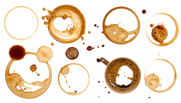 Collection of coffee stains on a white background isolated on transparent background