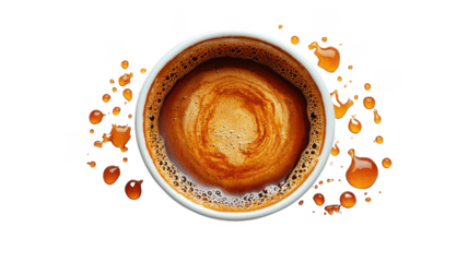 Top view of coffee cup and coffee stain isolated on transparent background, coffee concept