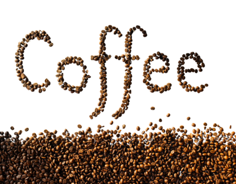 coffee beans in shaped of word or text "Coffee" isolated on white or transparent png