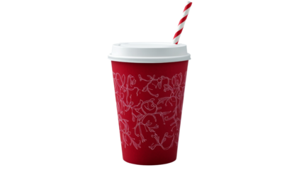 Red cup with coffee beans on transparent background