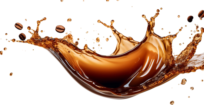 Dynamic Coffee Splash with Roasted Beans Beverage Dark Roast Caffeine