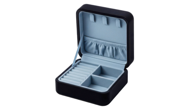 White Square Jewelry Box with Lid Open Showing Jewelry Inside