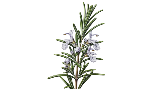 Rosemary Herb Botanical Illustration of Blooming Sprig, Culinary Medicinal Uses