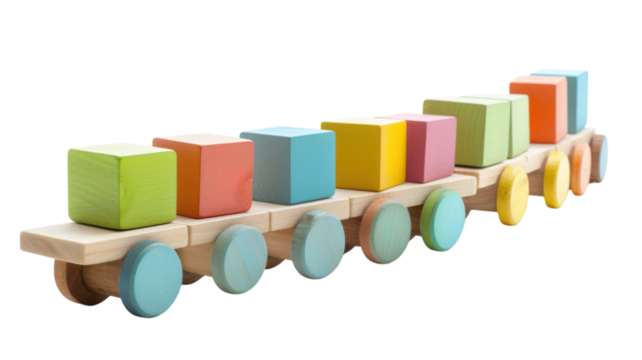 Colorful Wooden Pyramid Stacking Toys for Children with Red Tops to Enhance Fine Motor Skills and Cognitive Development, Isolated on Transparent and White Background
