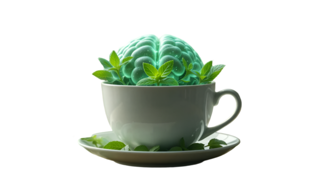 Brain boost tea for focus and memory enhancement natural herbal remedy for cognitive health and wellness isolated on transparent background