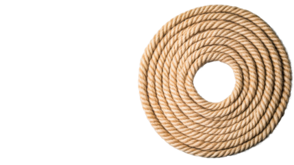 Beige rope coiled on transparent background