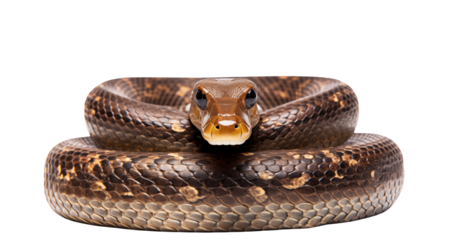 A coiled rattlesnake showcasing its intricate skin patterns and colors,Isolated on transparent background