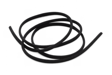Black rope coiled in a loop on a transparent background, textured and frayed ends