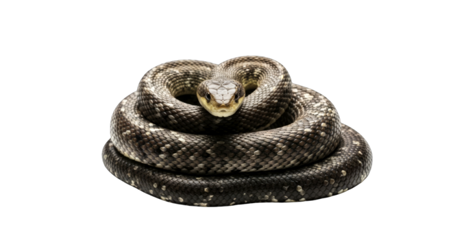 Majestic golden serpent coiled intricately with gleaming scales and forked tongue isolated on transparent background