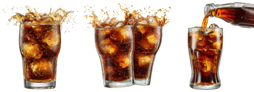 Refreshing cola flavored soda with bubbles isolated on white, transparent background