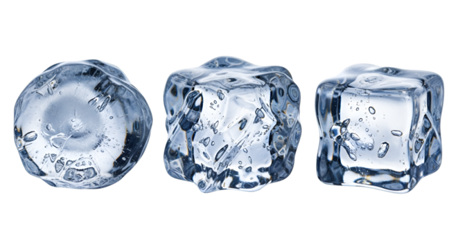 Three Ice Cubes with Air Bubbles frozen water cold