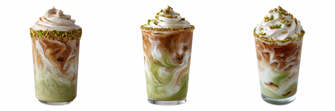 Set of 3 Iced Pistachio Lattes with Whipped Cream