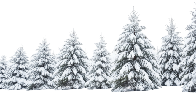 Tranquil winter landscape with snow-covered fir trees on transparent background