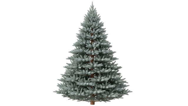 Isolated flocked Christmas tree ready for holiday decoration, a festive winter symbol