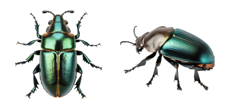 Iridescent green beetle isolated on transparent background, shiny insect with metallic shell for biology and nature studies PNG