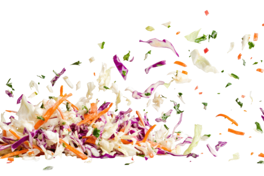 Coleslaw Elements Dropping Mid Air  isolated on a transparent background