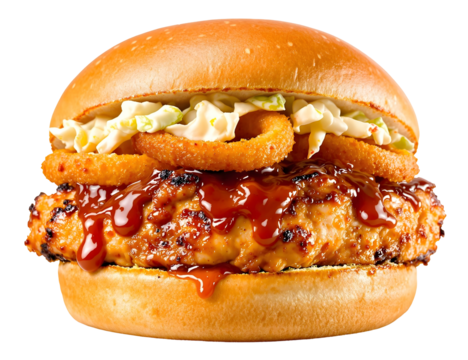 Spicy BBQ chicken sandwich isolated on white or transparent background