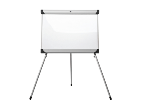 A freestanding whiteboard on a tripod stand, suitable for presentations or brainstorming sessions.
