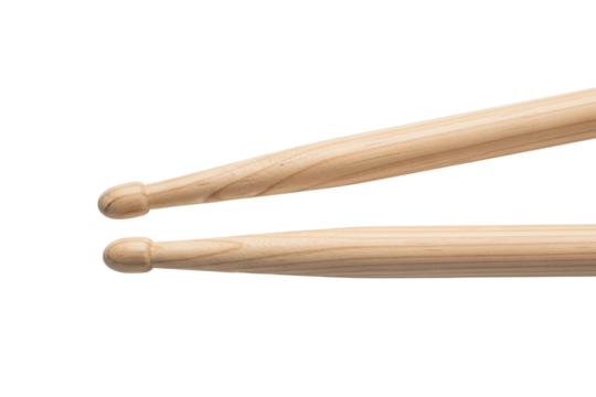 Drumming action with wooden sticks music view isolated on transparent background