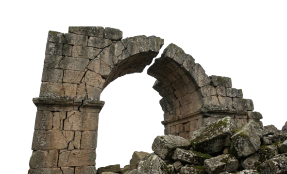 Ancient Stone Arch Ruins With Collapsed Blocks isolated on transparent background