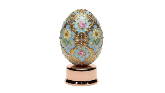 Ornate Faberge egg isolated PNG, decorative floral design with gold accents on transparent background, vintage style collectible