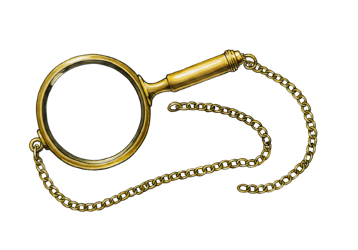 Golden Magnifying Glass Illustration with Chain on Transparent Background