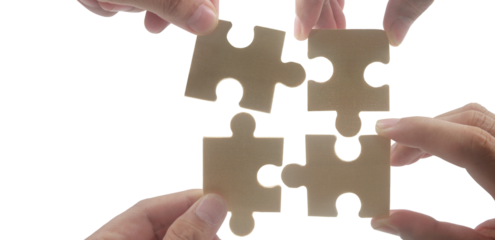 Collaborative puzzle assembly studio photography bright close-up teamwork concept