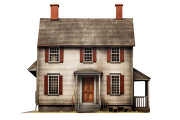 Dutch colonial house with gambrel roof, dormers, and shuttered windows, isolated on white background